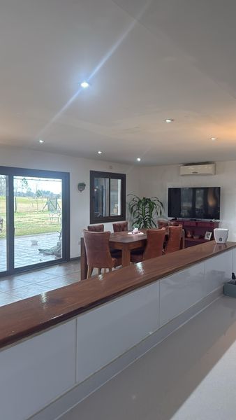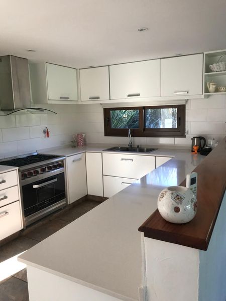 La cocina está diseñada con un concepto abierto que la integra perfectamente al living comedor, ofreciendo un espacio ideal para reuniones familiares y sociales. Un toque de elegancia adicional es la salamandra a leña, que añade un toque de sofisticación a cualquier reunión. Disfrute de sus momentos al aire libre en la galería techada, equipada con parrilla, bacha y una zona de guardado que garantiza un espacio ideal para reuniones al aire libre. Además, el galpóncito guarda enseres es perfecto para mantener su propiedad organizada.