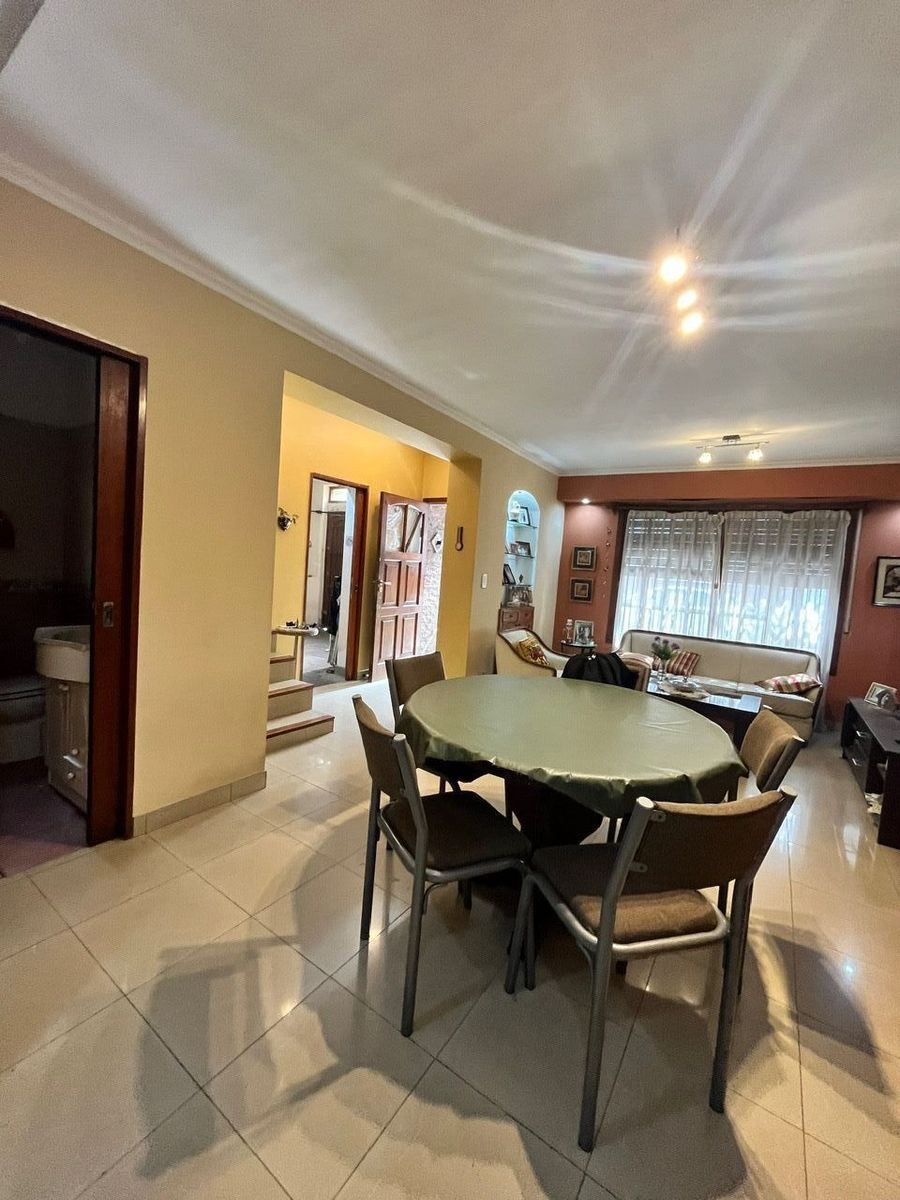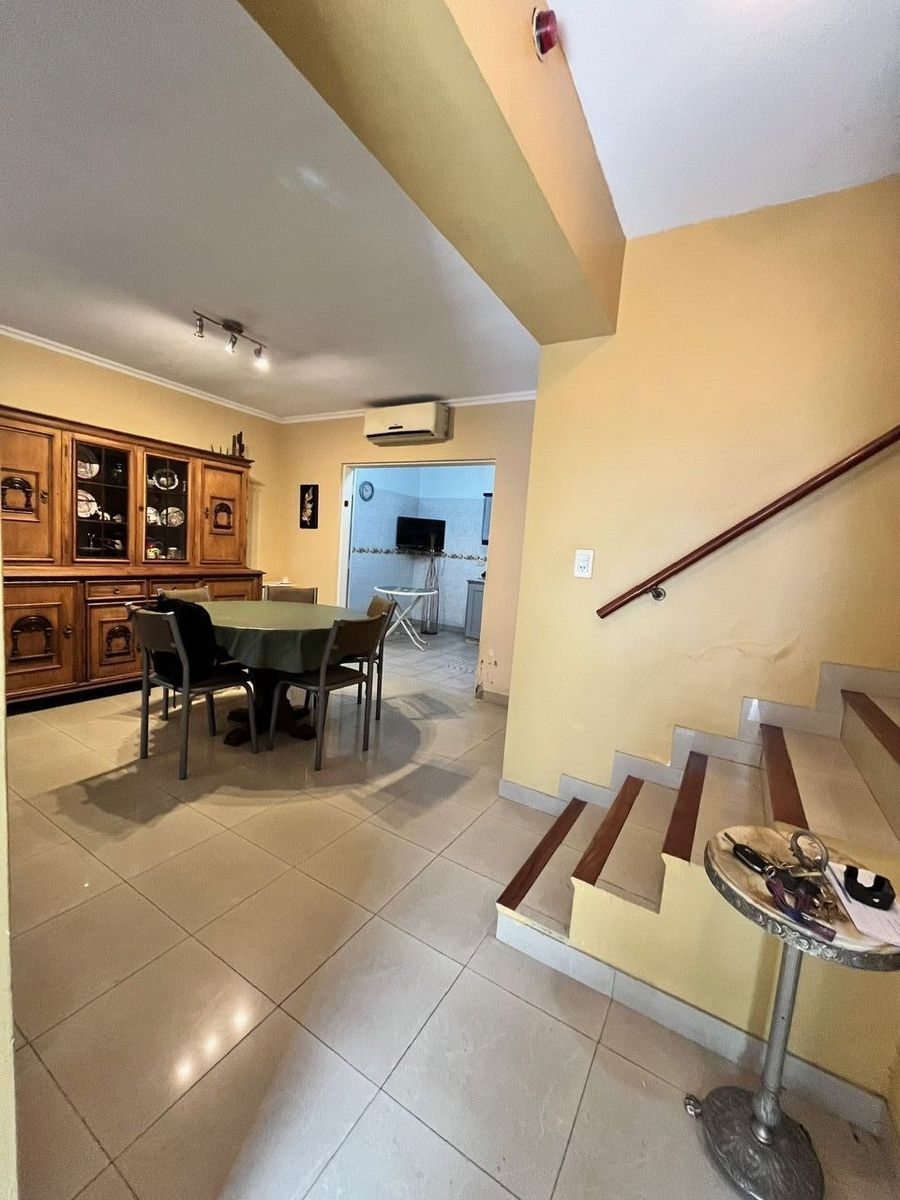 EX MUNICIPAL totalmente refaccionada que cuenta con un hall de entrada que nos conduce al living comedor con piso de porcelanato, ventanal a la calle y aire acondicionado, con excelentes detalles de terminación, desde el living se conduce a la cocina comedor diario, con piso cerámicos, acceso al patio de planta baja, totalmente equipada con bajo mesada y alacenas horno y anafe, purificador de aire y delicados detalles de terminación. El patio, airea, ilumina y ventila la cocina, además de contar con un poco de verde que oxigena el hogar. Desde el hall de entrada, se accede al toillete recibidor, instalado con piso y revestimiento en cerámica, y a la cochera con portón levadizo de generosas medidas. En el hall de entrada se visualiza la escalera que nos conduce a la planta alta, donde la vivienda nos ofrece 3 cómodos dormitorios con placard y pisos en madera, dos con venta a la calle y el tercero con balcón privado al contrafrente. Así mismo en este piso nos presenta un baño completo instalado con bañera, piso y revestimiento en cerámica y vanitory. Desde la planta alta, mediante una cómoda escalera tipo caracol, se accede a la planta azotea dode nos encontramos con un excelente quincho cubierto con cocina equipada y la parrilla descubierta en una amplia terraza.-